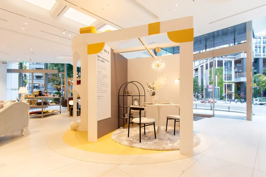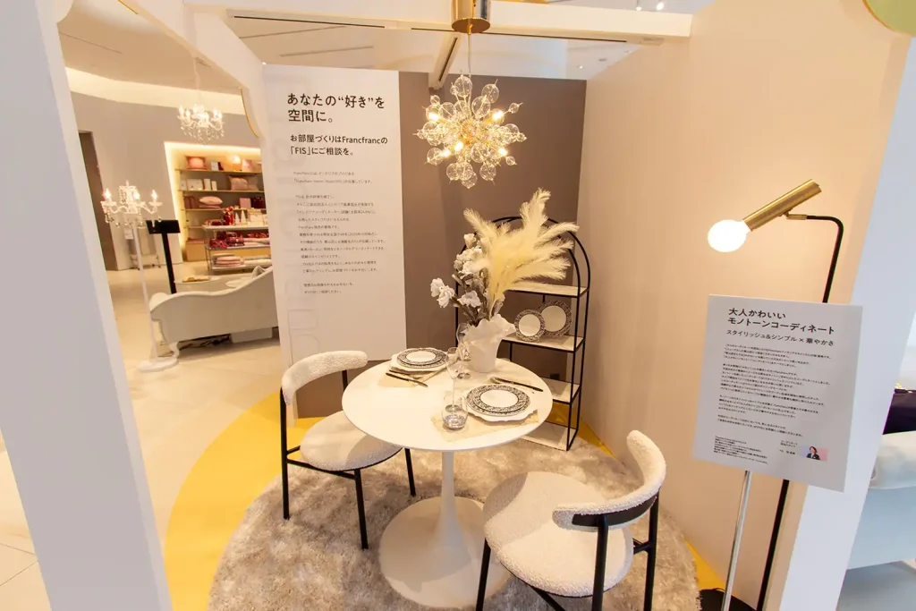 内部をインテリア展示スペースとして構成し、Francfrancの世界観を体感できるデザインに