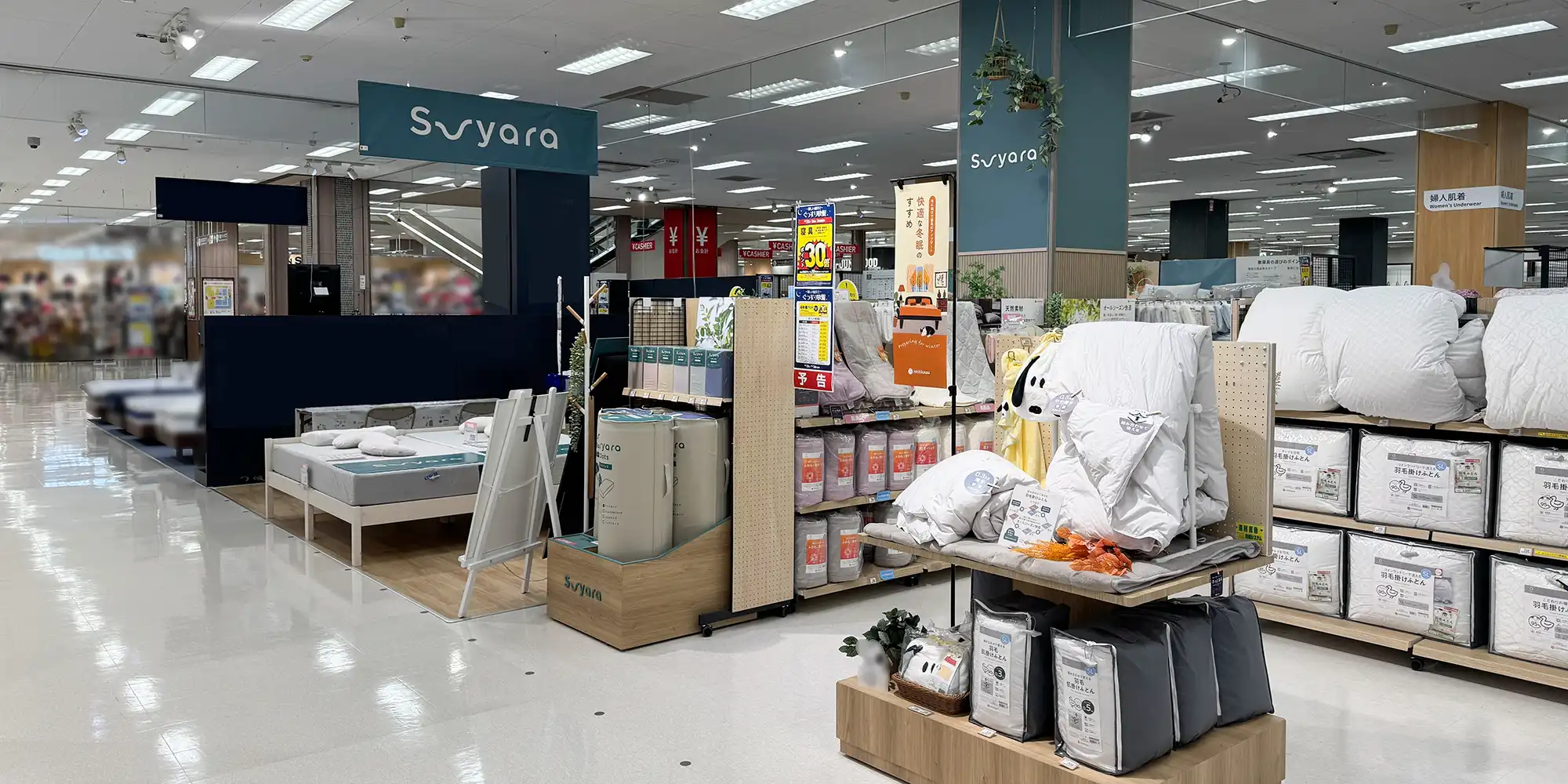 新ブランド「suyara(スヤラ)」1号店がイトーヨーカドー大森店にオープンし、ビーツが店舗コーナー全体の装飾計画・施工から、量産展開を見据えた什器設計・制作までを担当しました。