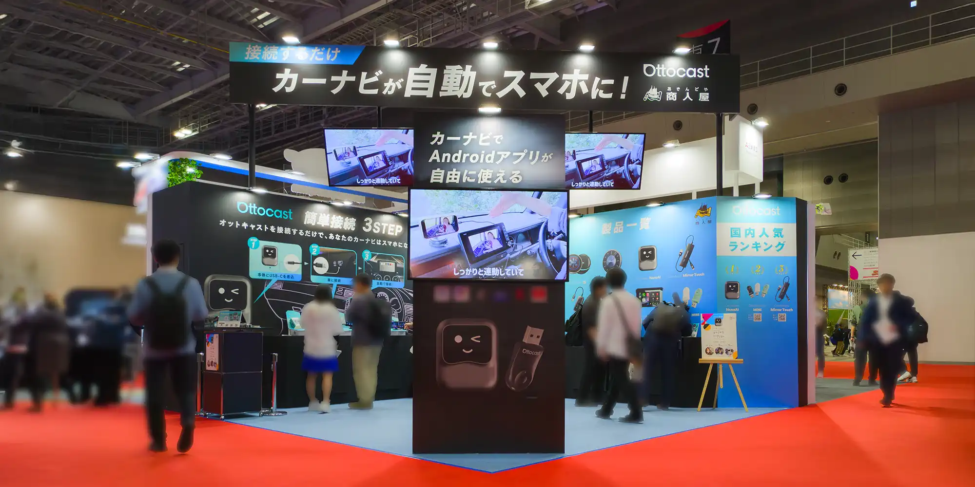 さらに、壁面グラフィックやモニターで使用シーンを視覚的に伝え、スタッフ増員によって来場者対応力と訴求機会の最大化を図りました。