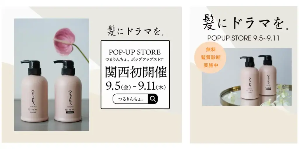 美髪のプロフェッショナルメーカーである株式会社髪にドラマを様。展開中のヘアケアブランド「つるりんちょ。」から、ブランド初となる香りバリエーション「つるりんちょ。HATSUKOI」が登場するタイミングに「LUCUA1100(ルクアイーレ)」でポップアップストアを開催されました。ビーツは本ストアの設計・施工および平面ツール制作を担当しました。