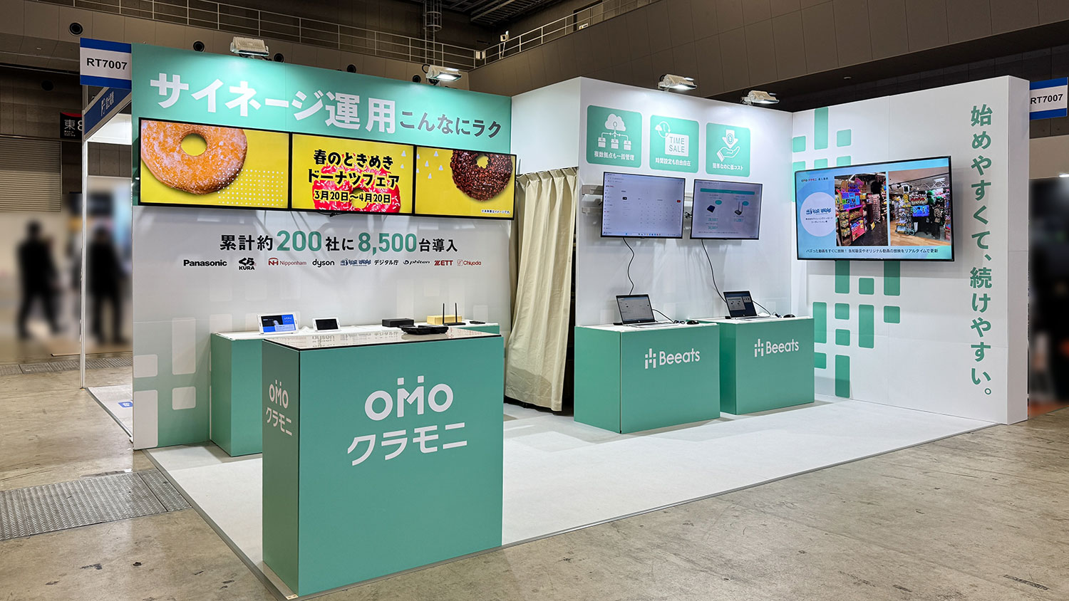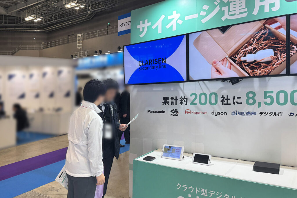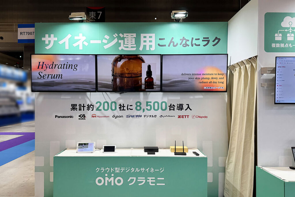 弊社ブースでは、クラウド型デジタルサイネージ「クラモニ」をご紹介させていただきました。
