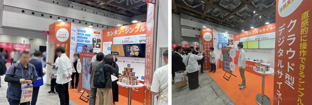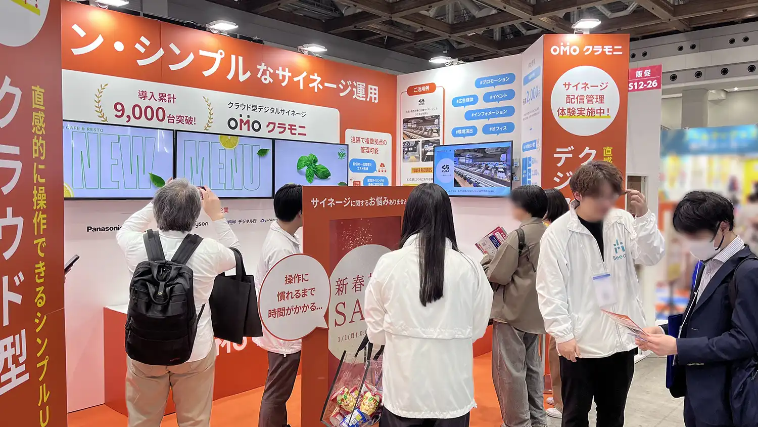 弊社ブースでは、クラウド型デジタルサイネージ「クラモニ」をご紹介させていただきました。