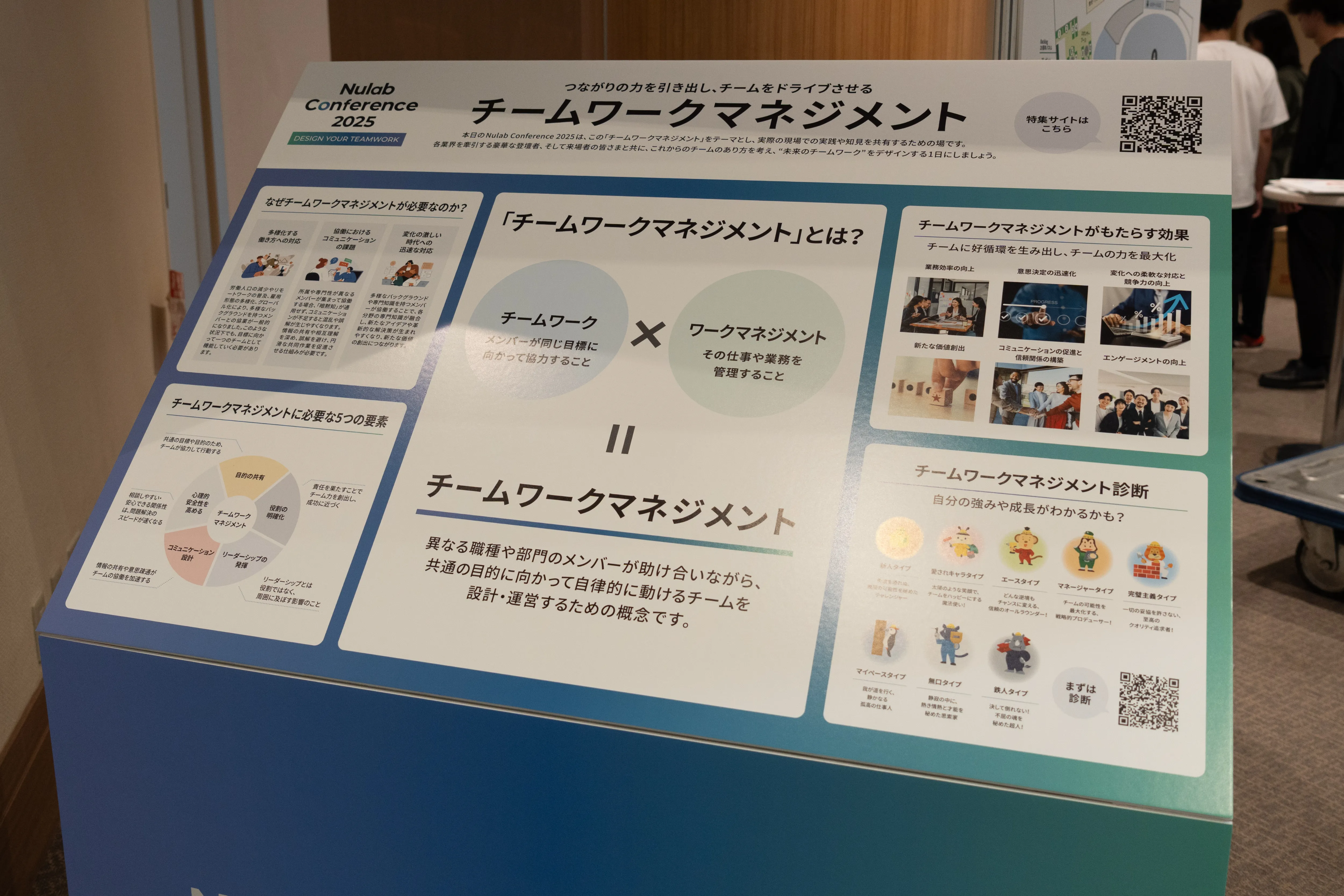 2024年に展示会出展のご相談をいただいたことをきっかけに、以降、複数回にわたり出展支援を行ってきました。2025年には株式会社ヌーラボ様が提唱する、チームが前に進み続けられる状態を設計するという考え方「チームワークマネジメント」という価値をより広く届ける場として、数年ぶりとなる大規模カンファレンス「Nulab Conference 2025」を開催。